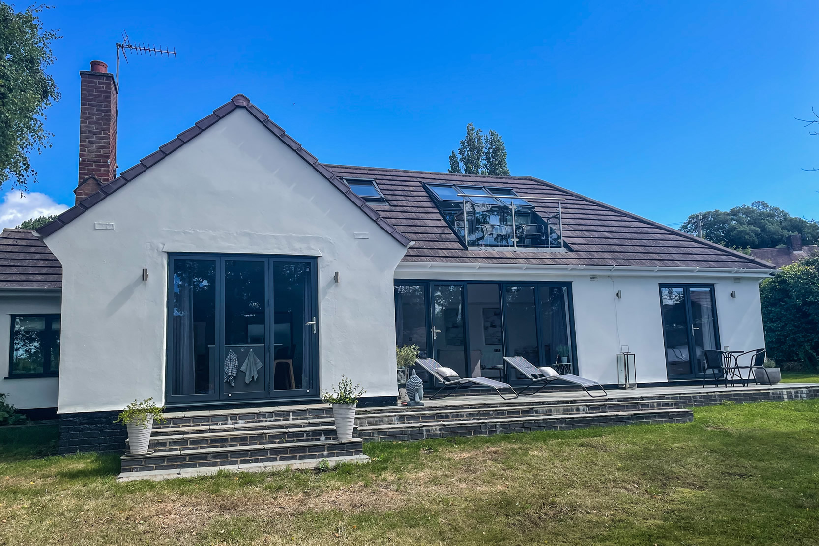 The original plan was to extend at ground floor and also add Velux Roof Terrace windows to the existing loft room to make the most of the stunning views across the Dee Estuary. The kitchen was relocated from the front of the property, to the rear, overlooking the secluded garden.